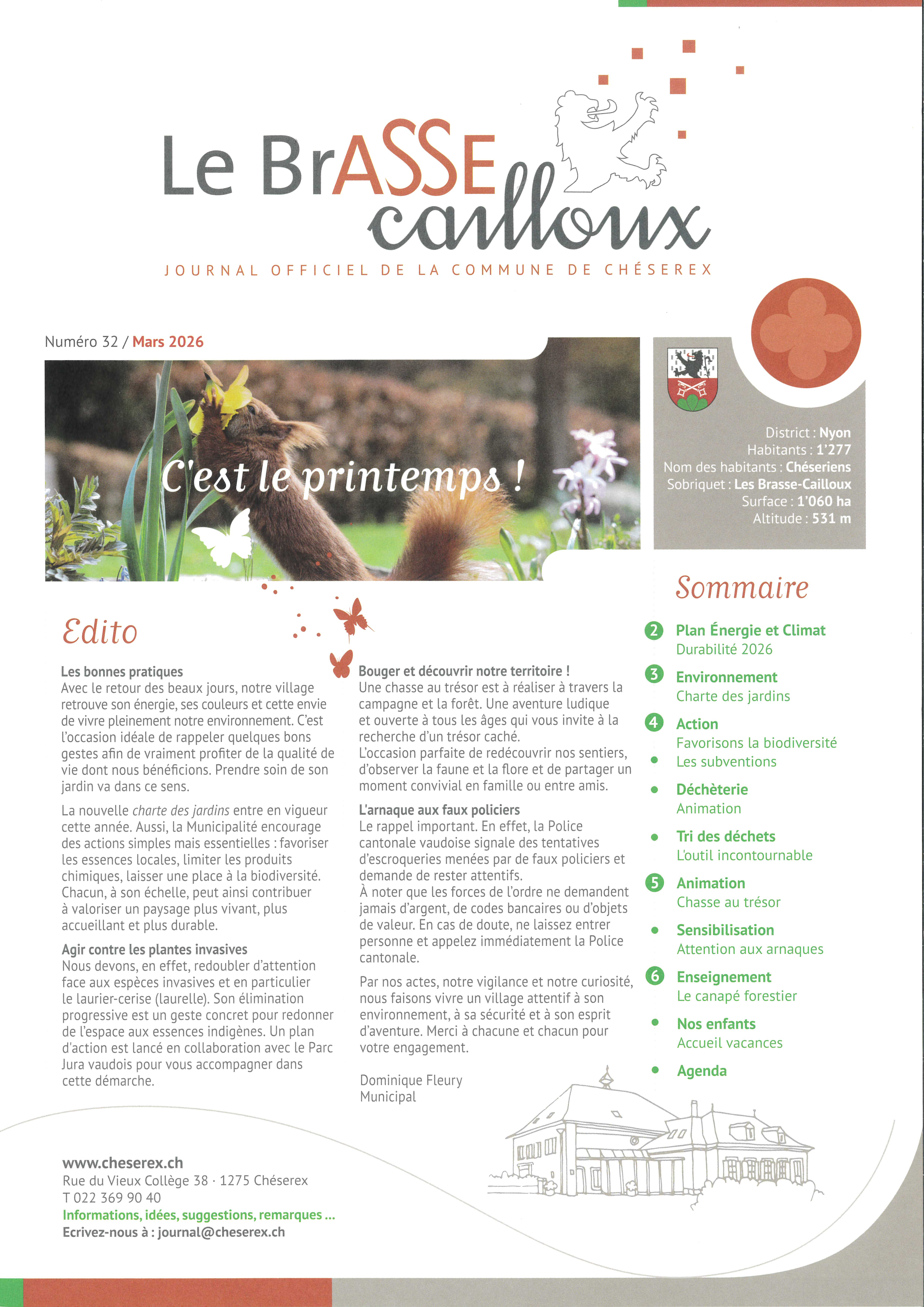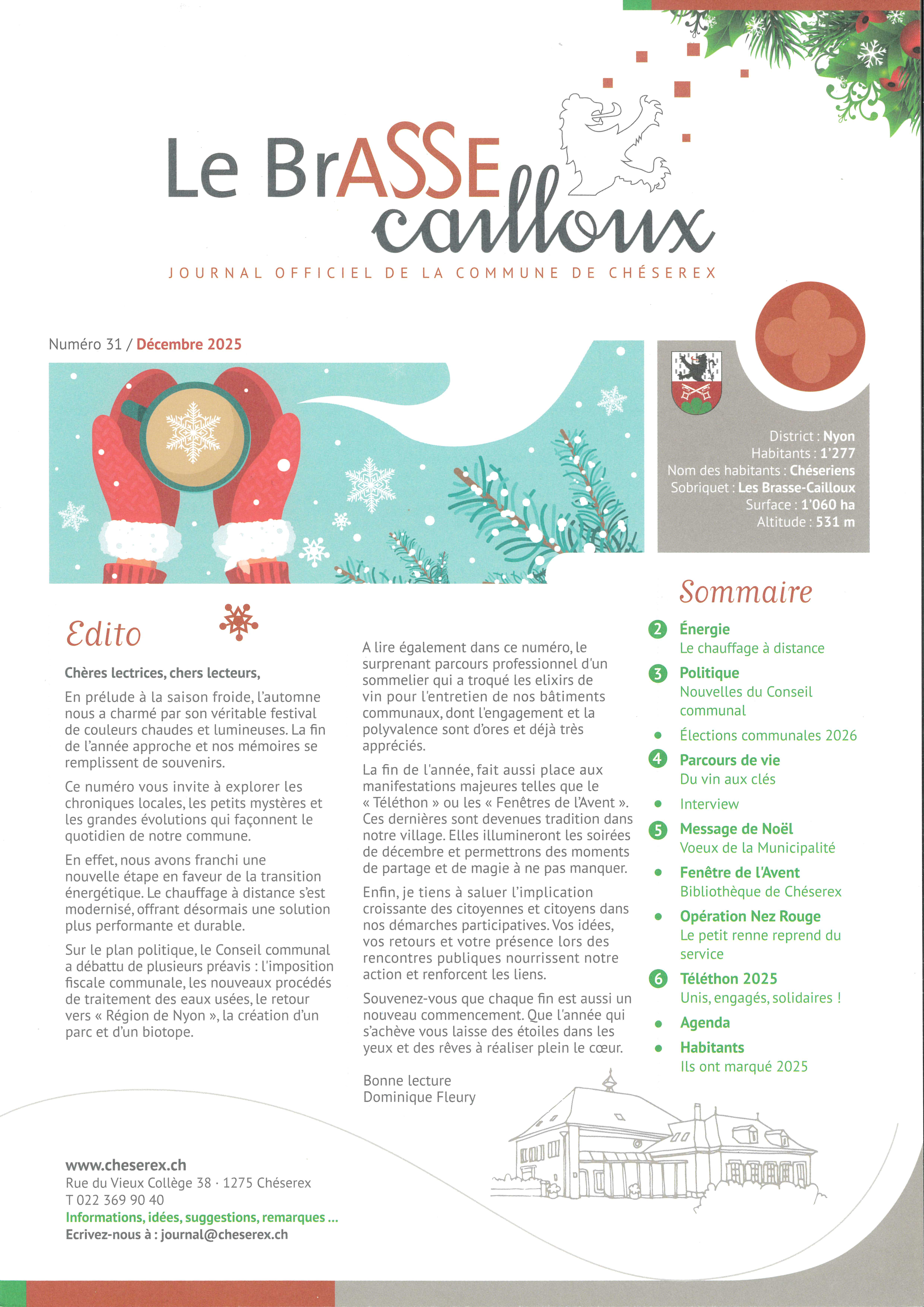 A cette fin, elle reçoit volontiers vos propositions de thème à aborder et/ou d'article, d'information à diffuser, de suggestions, de remarques en écrivant à journal@cheserex.ch.